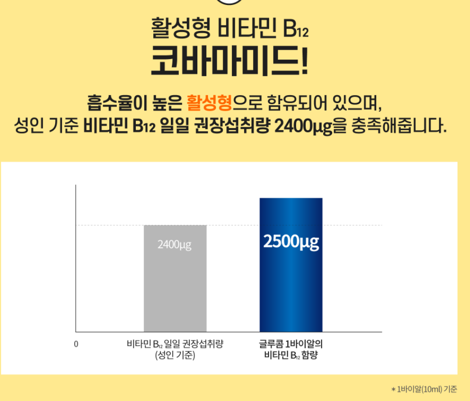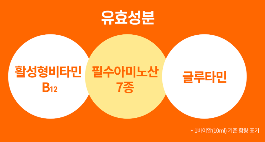 활성형비타민 B12, 필수아미노산 7종, 글루타민 으로 성분 구성