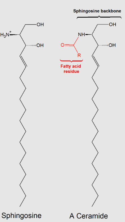 sphingosine에 fatty acid가 붙어있는 형태를 ceramide 라고 합니다.