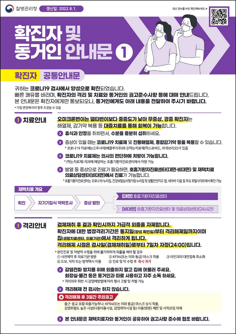 막상 코로나 당사자가 되고 보니 공식적인 행동지침을 찾기가 어렵더군요.
