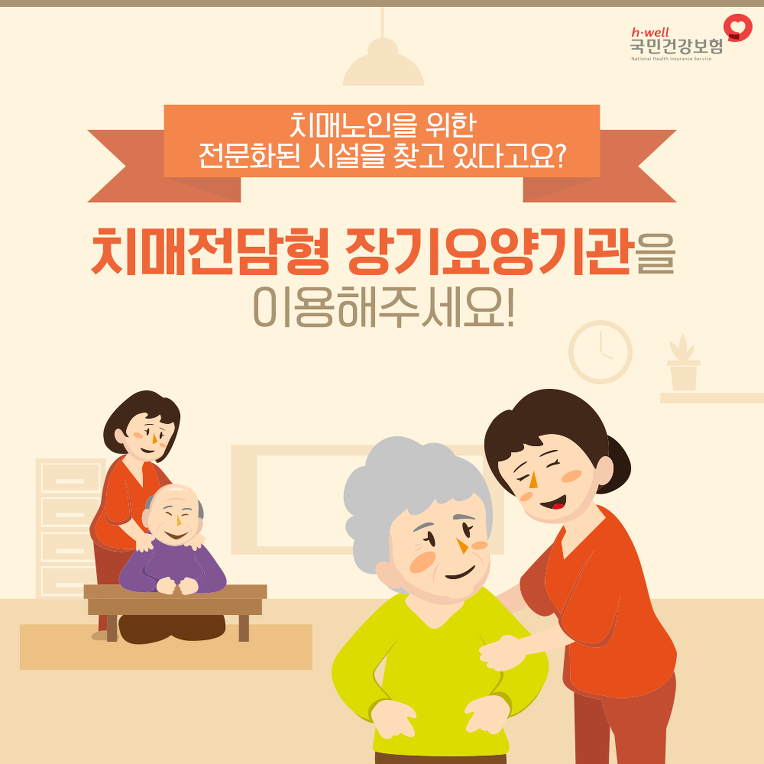 : 노인장기요양보험 홈페이지에서 장기요양기관 찾기 ---> 자신이 사는 지역 치매전담형 요양기관 검색