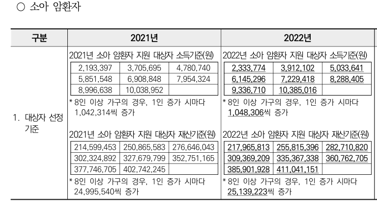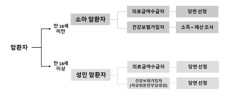 -소아암: 만18세 미만 소아암환자 중 소득재산조사 기준 적합자